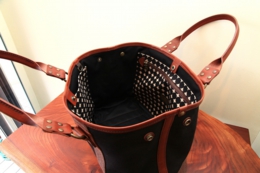 ヘンプとタンニンレザーのA4サイズのトートBAGです。中パーツの生地にはハンプを使っています。